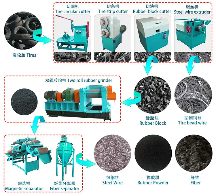 whole tire into approximately 50-80mm rubber |