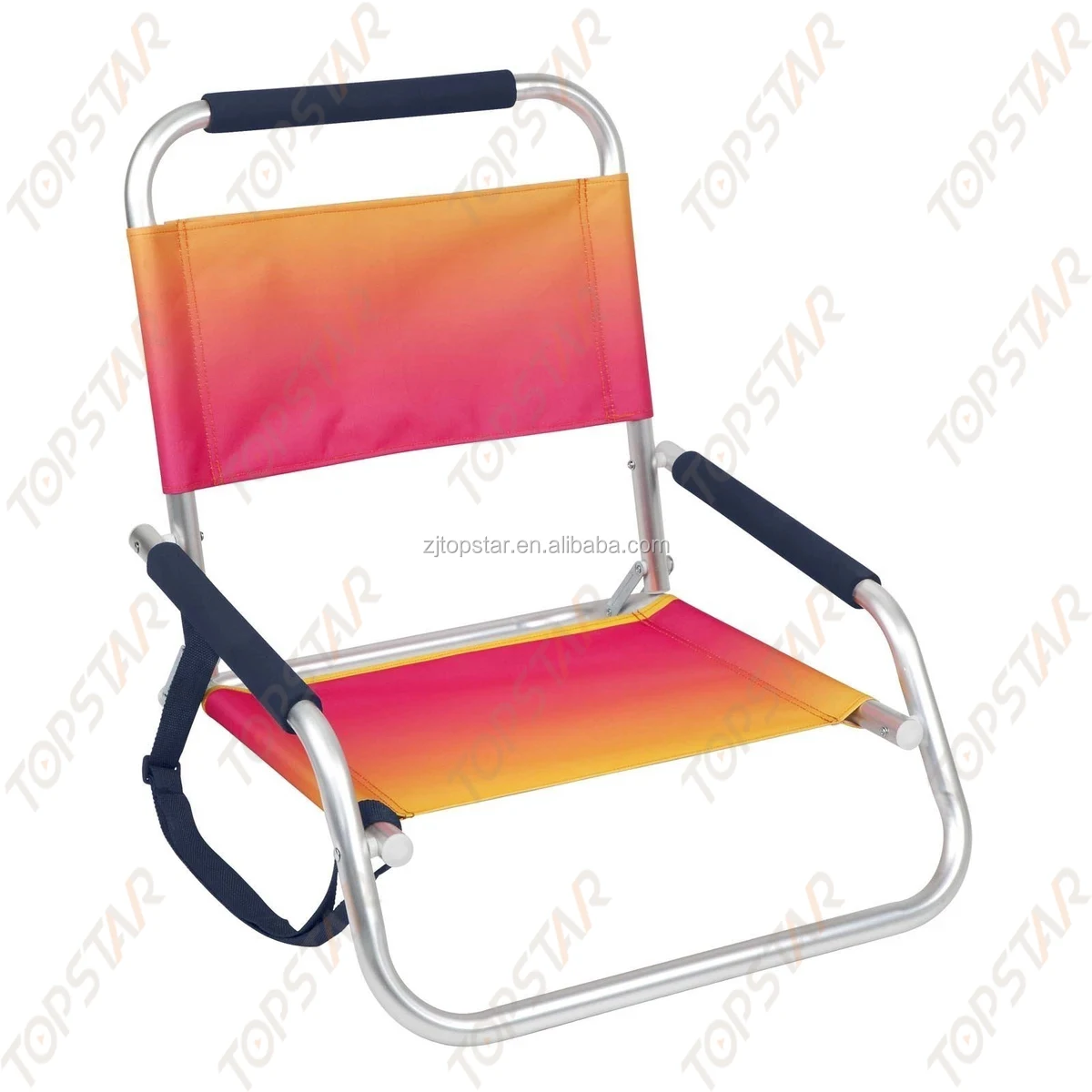 Portable foldable low seat beach chair with shoulder