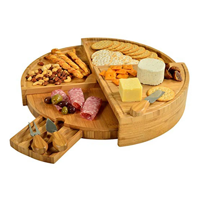 Wholesale Rectangle Wooden Bamboo Cutting Cheese Board With Drawer