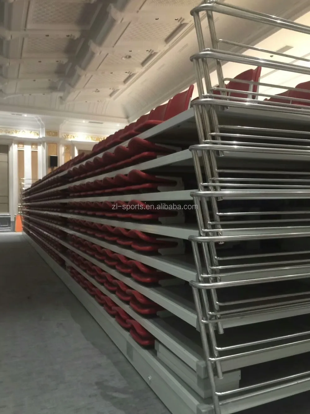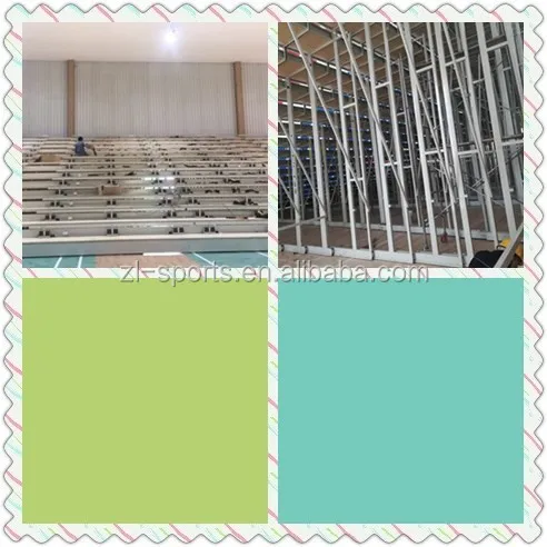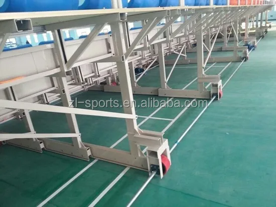 When grandstands or bleachers are stretched out, the outstretched chairs on the steps enable spectators to sit on comfortably and enjoy a visual feast. As the bleacher system is contracted as a drawer, it saves space for you to plan other activities. Retractable bleachers makes most of the limited room and satisfy various seating needs under different situations.When grandstand are stretched out, foldable seats also will be opened.