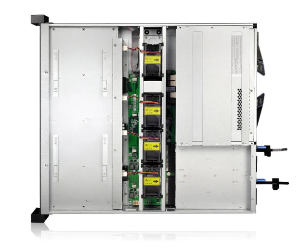 Not only the main controllers, but also fans, power supplies, and hard disks are all modularized. In general, replacing cables with PCB boards can greatly improves system reliability and heat dissipation.