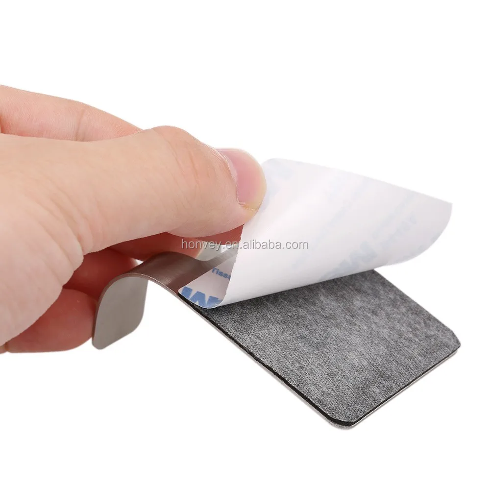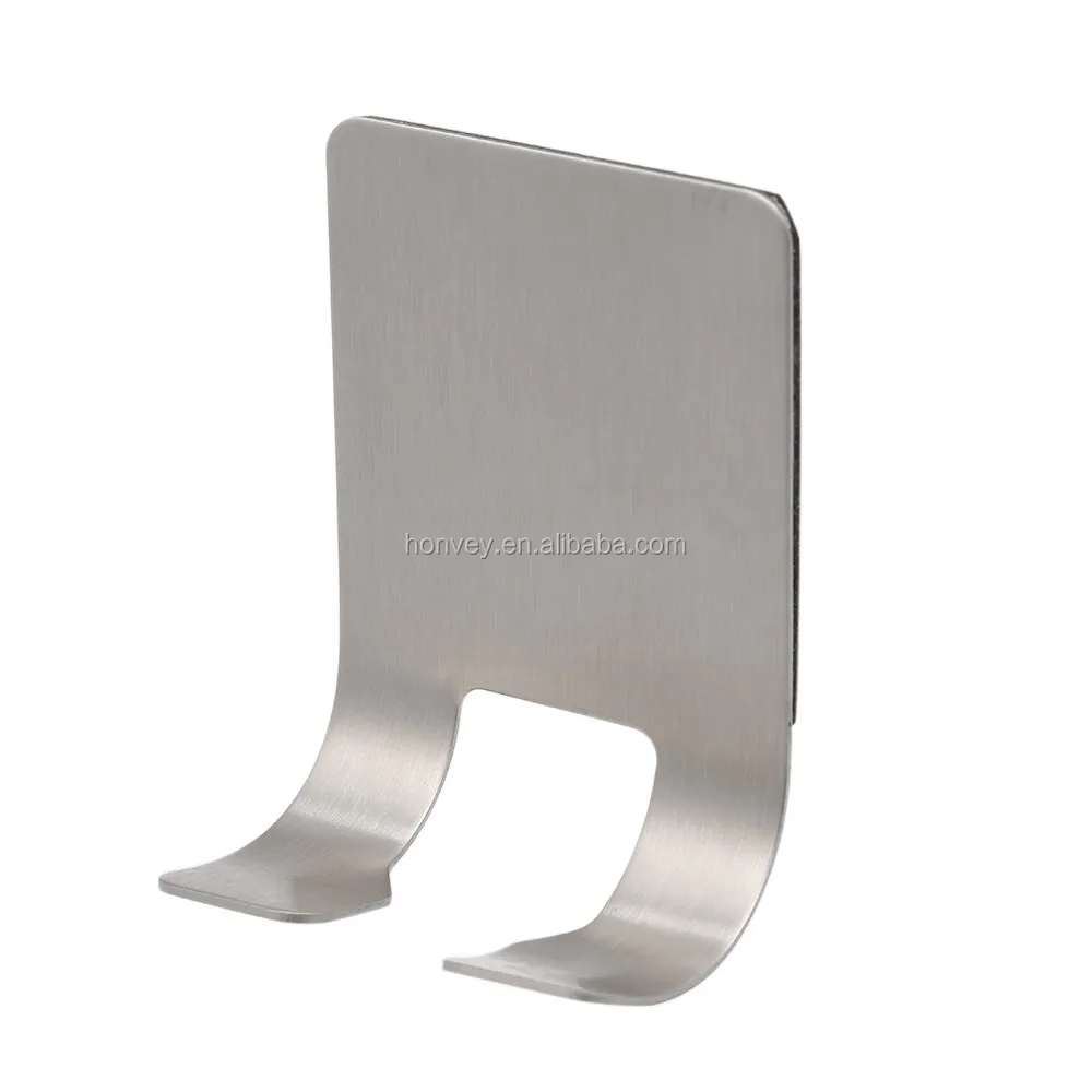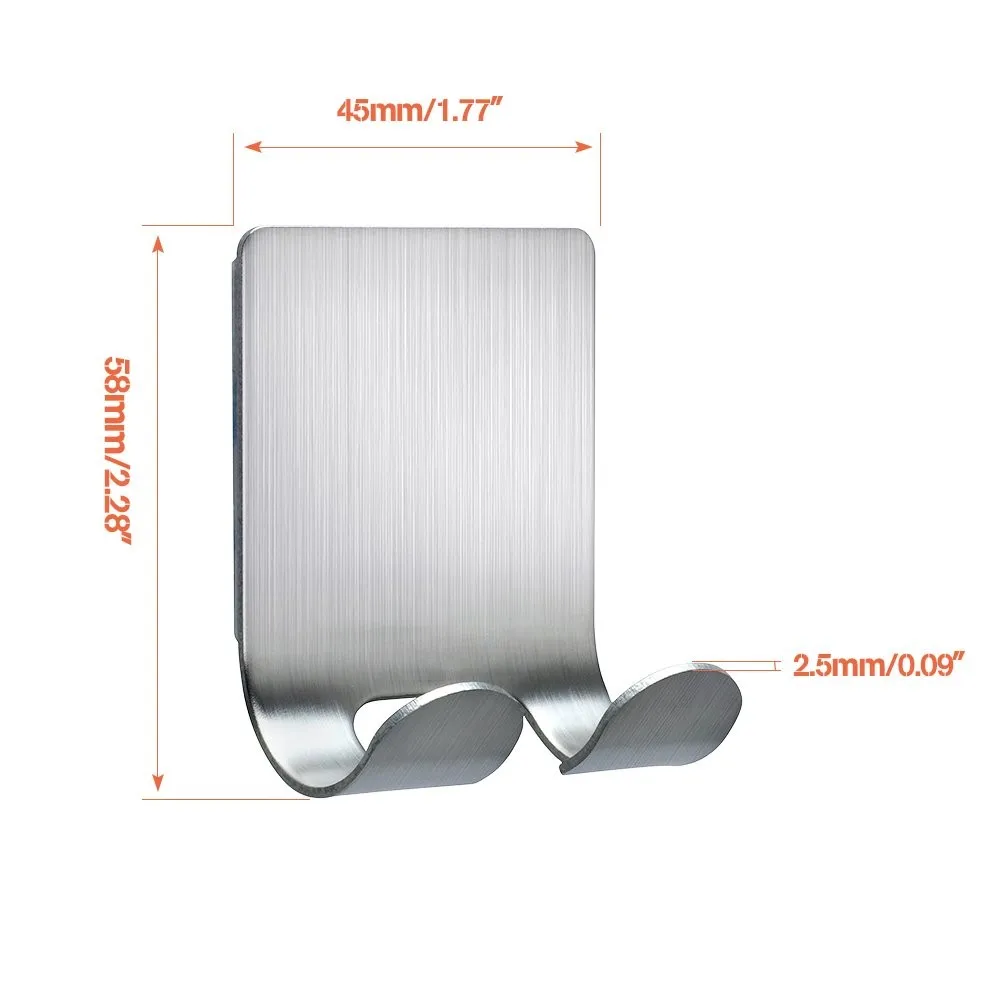 Material: Stainless Steel Can bear weight up to 1kg(2.2lb) Surface: Brushed Back: self-adhesive Dimensions: 2.28" x 1.77" Package Included:4 x Adhesive Hooks