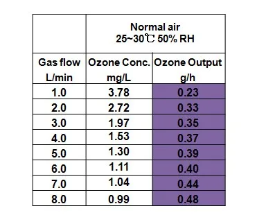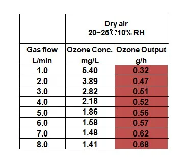 3. High ozone concentration: > 5.0 mg/L at 1.0 L/min gas flow