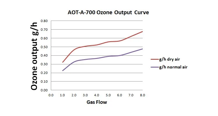 1. Ozone output: 700mg/h with dry air, 500mg/h with normal air