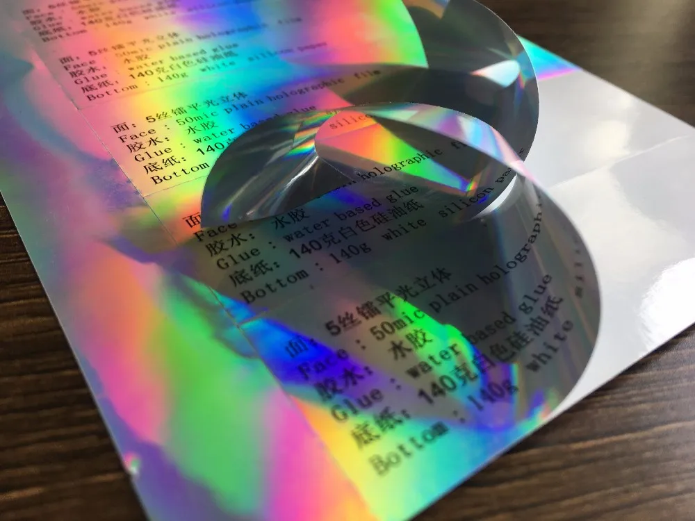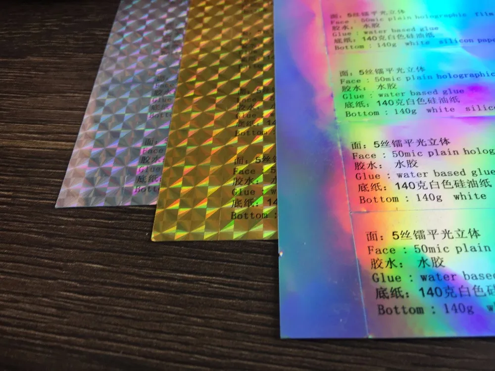 Self adhesive film : PET, PVC, PP, PE, holographic, glitter , customized VOID anti-counterfeiting etc.