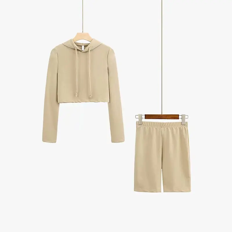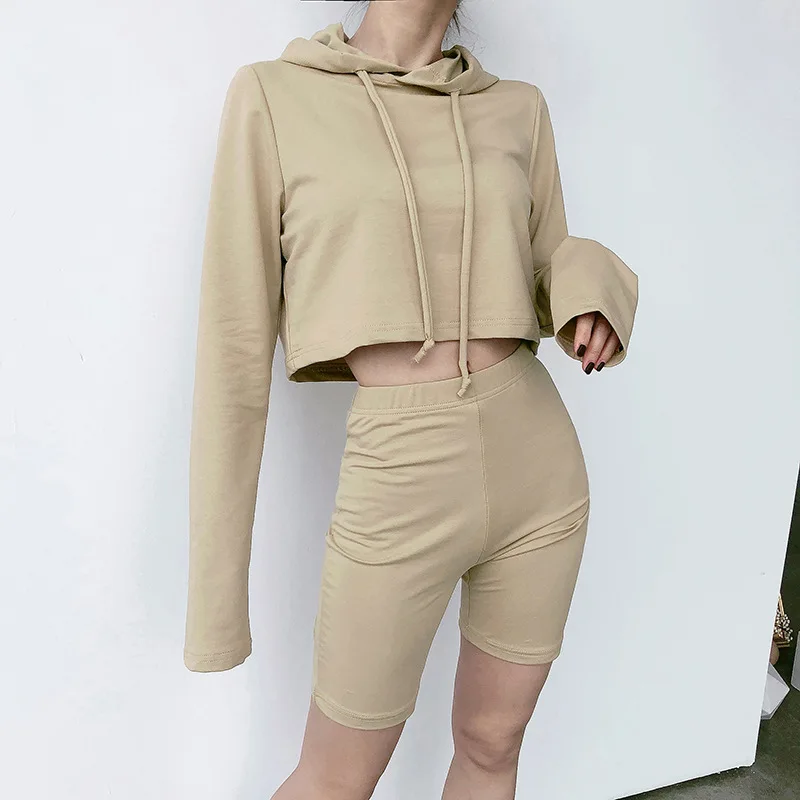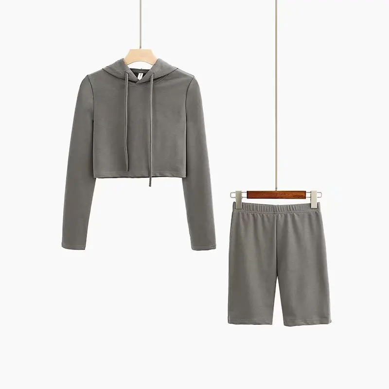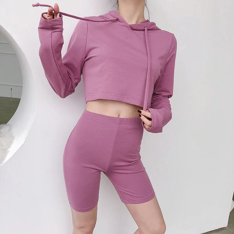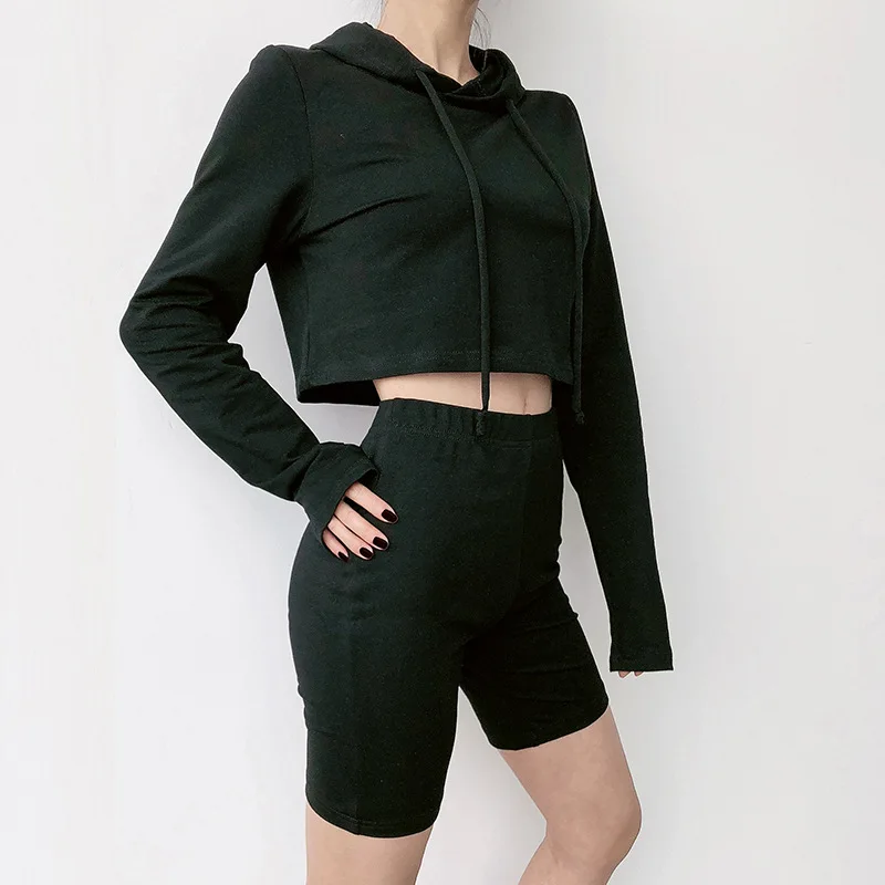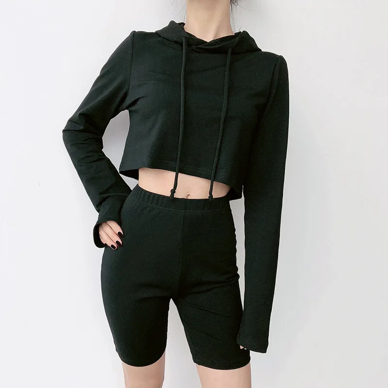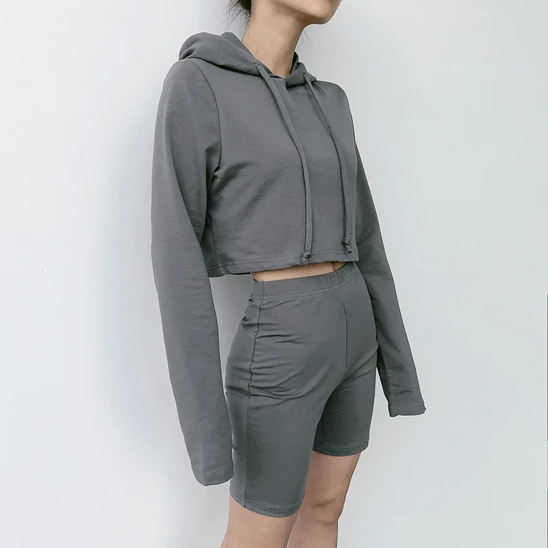Custom Workout 2 Piece Women Set Oversize Hoodie Women Sweatshirt 100% Cotton Cut Cropped Top Hoodie US $6.68-$8.89