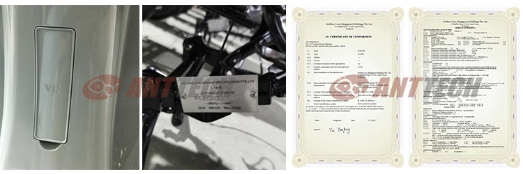 The EEC certificate NO and the VIN No. are carved on the Aluminium plate on the frame. The COC paper, which demonstrates all the details of VESPA, will be delivered together with the vehicle to you. You'll get local registration very easily with COC paper.