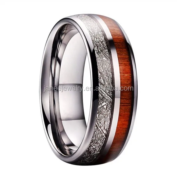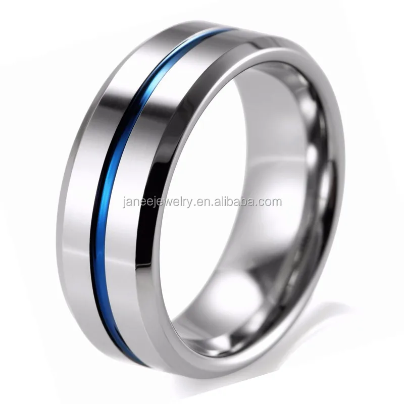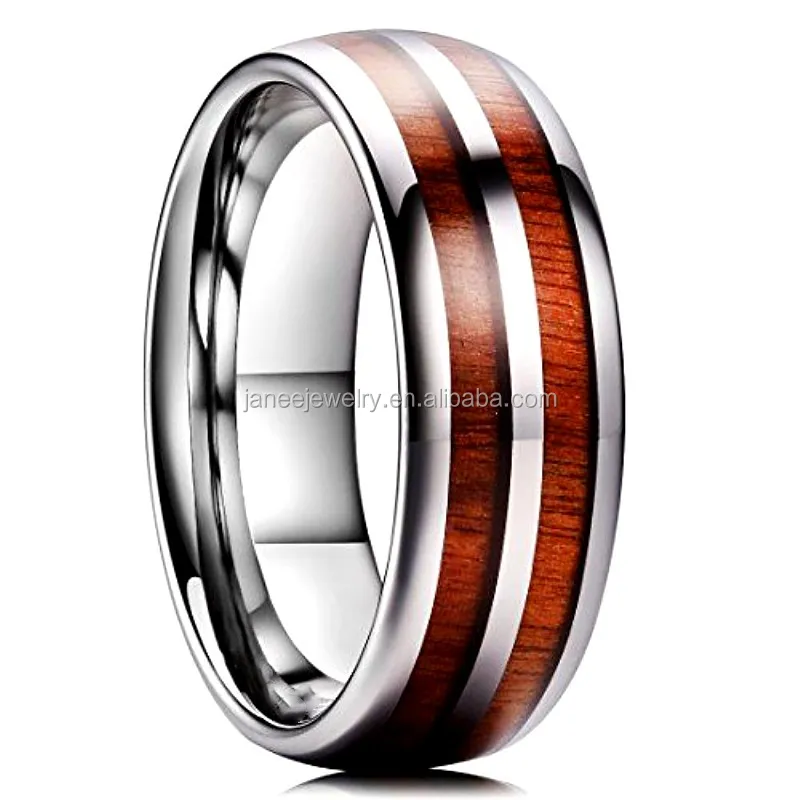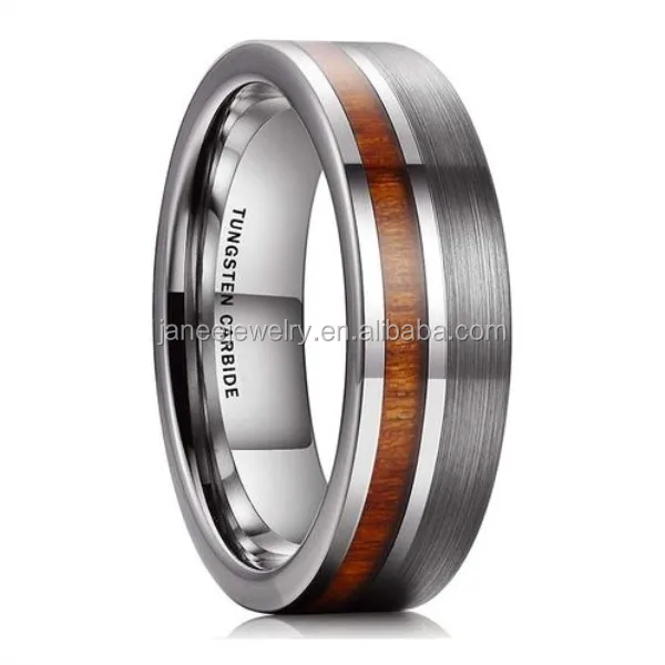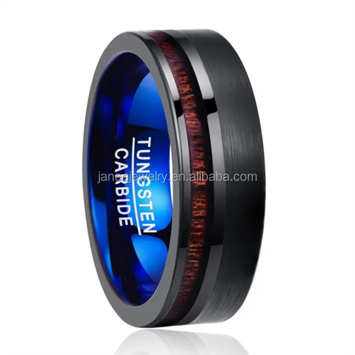 2019 Mens Matte Polished Black and Blue Tungsten Carbide Koa Wood Inlay Ring 6mm 8mm