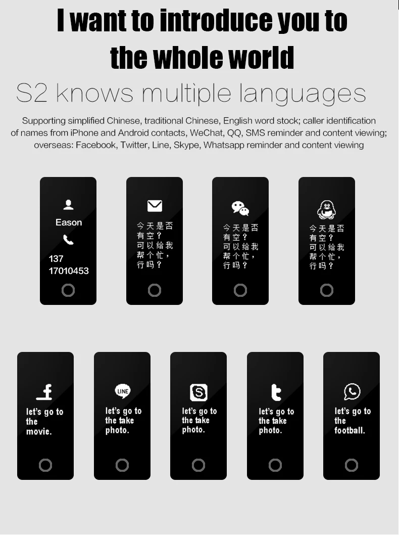-Alert: incoming call,SMS, text display of Facebook/Twitter/Line/