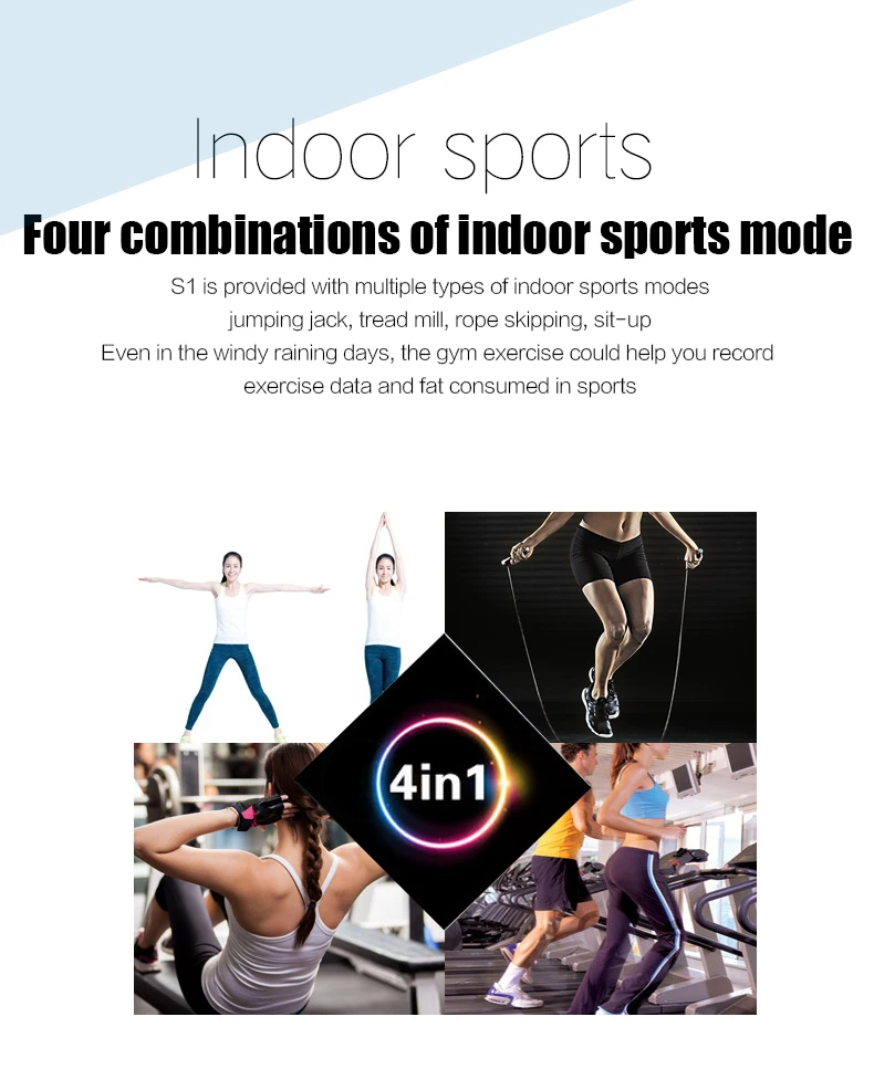 -Multiple Workout Modes: Jumping rope, Jumping jacks, Sit-ups, Running