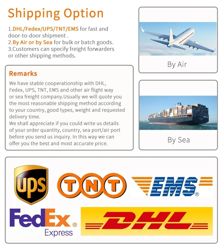 A : Quantity less than 100 pcs will shipped within 2days. 15-20 working days for OEM/ODM orders. And it will take another 3-5 days to reach you BY DHL, UPS,FEDEX, TNT .....etc.