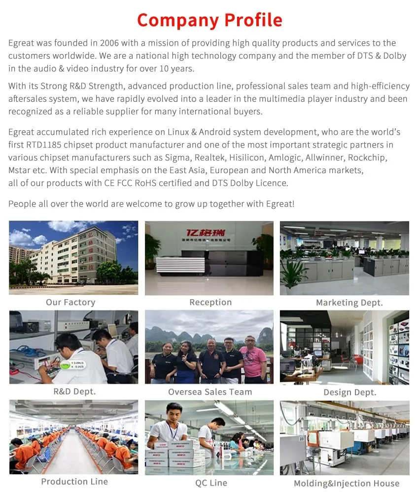 With years of export experience along with excellent quality, advanced services and competitive prices, Egreat has won numerous customers' trust and support.