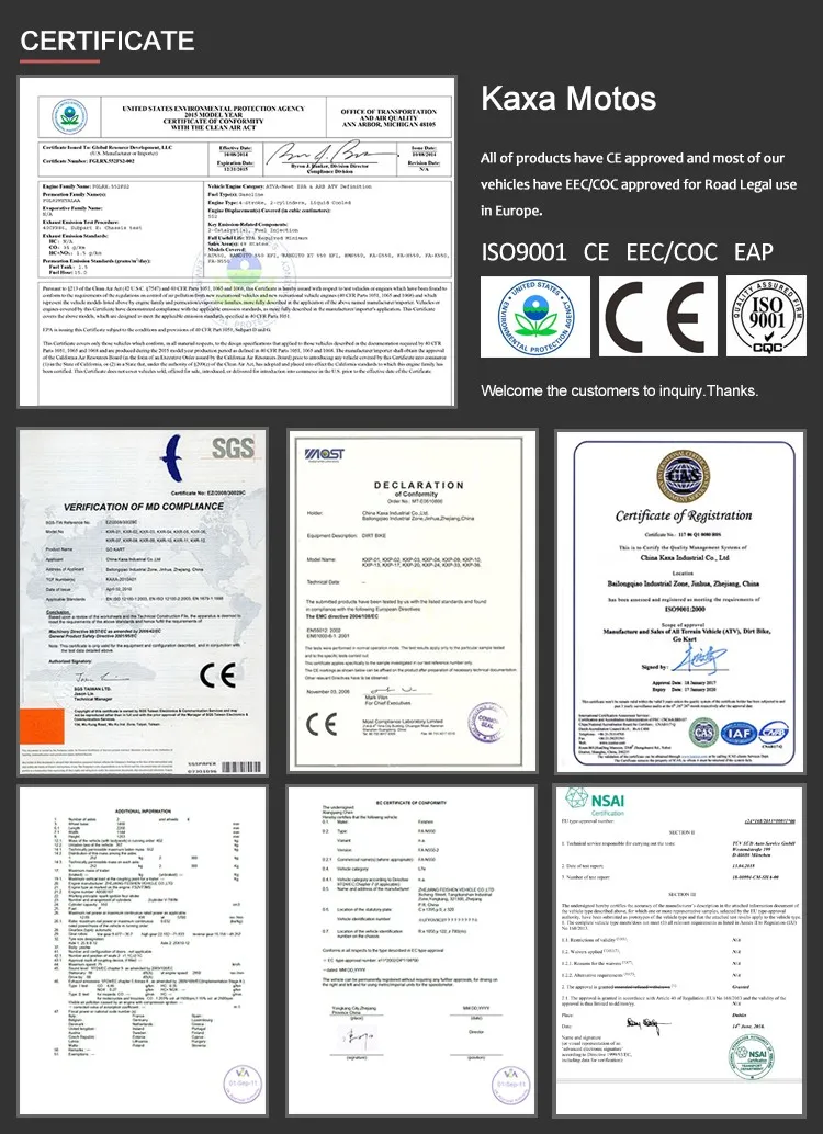 most of vehicles have EEC/COC approved for street road legal use in Europe, some ATV