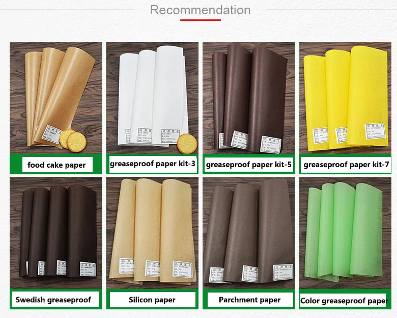 Feature: | ♦ Excellent heat and oil resistance. ♦ Excellent waterproof. ♦ Excellent slip easy. ♦ 21 colors for you to choose ♦ 100% virgin wood pulp production. ♦ Customized size/grammage are available. |