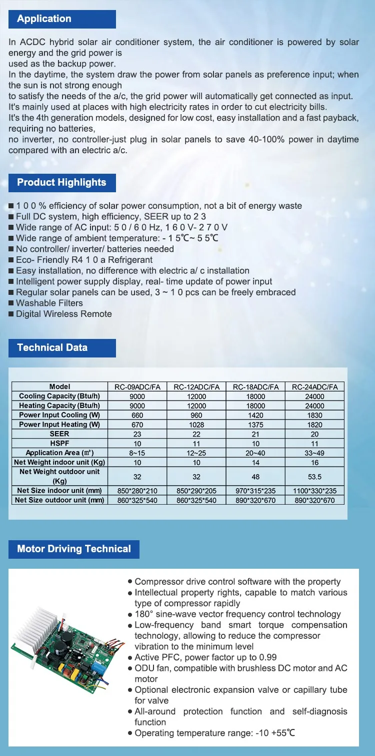 supplier in the field of power electronic technology and frequency conversion control technology. We are committed to development of circular and green economy. With the aim to be the world's first-class supplier of energy-saving electrical appliance products and system solutions, Our tech have been hammering at R&D for years, and we have successfully developed the world's first solar-direct-generating inverter air conditioner.