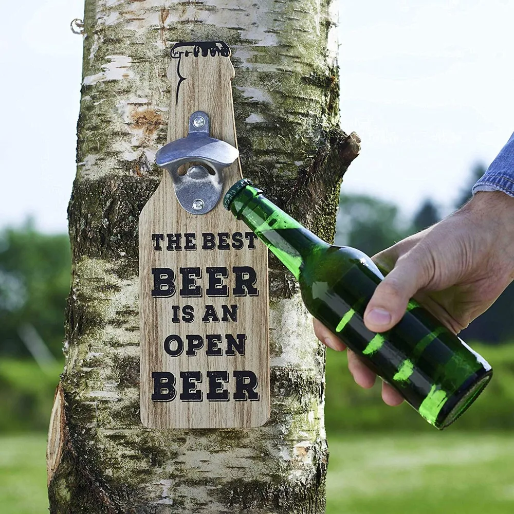 ✔ HIGH QUALITY MATERIALS: Wooden plaque with a water resistant lacquer finish to ensure durability and long lasting. 100% Zinc alloy opener for perfect functionality