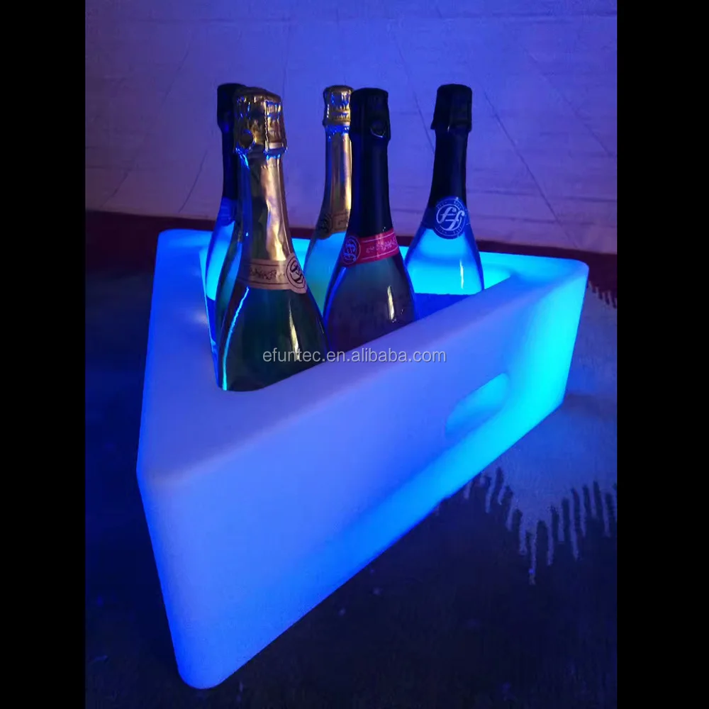 LED flower bucket/led ice bucket/led ice holder,PE material/acrylic outside, used super bright LED as light source; it has the lighting effect of red, green, blue, white and mix color, and to attain different lighting effect through control panel keystroke or remote controller. It is used low voltage power supply, safe and reliable, energy saving and long lifespan.