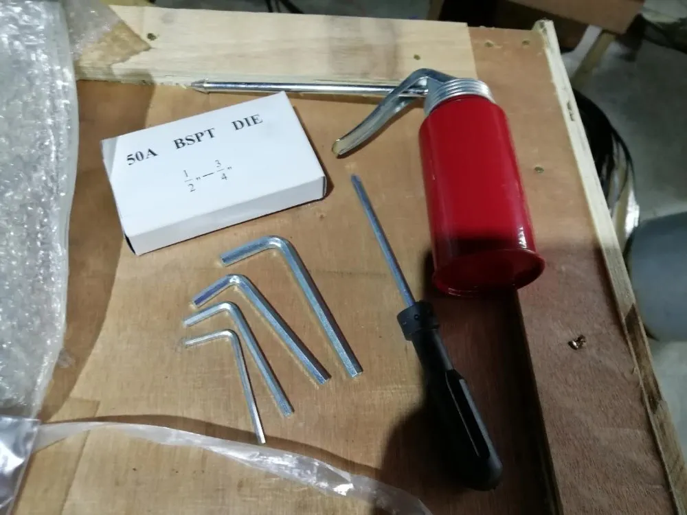 With Heavy Duty Tripod Stand, English Instruction Manual, Threading Oil and Die Head, Chaser Set and Tool Kit