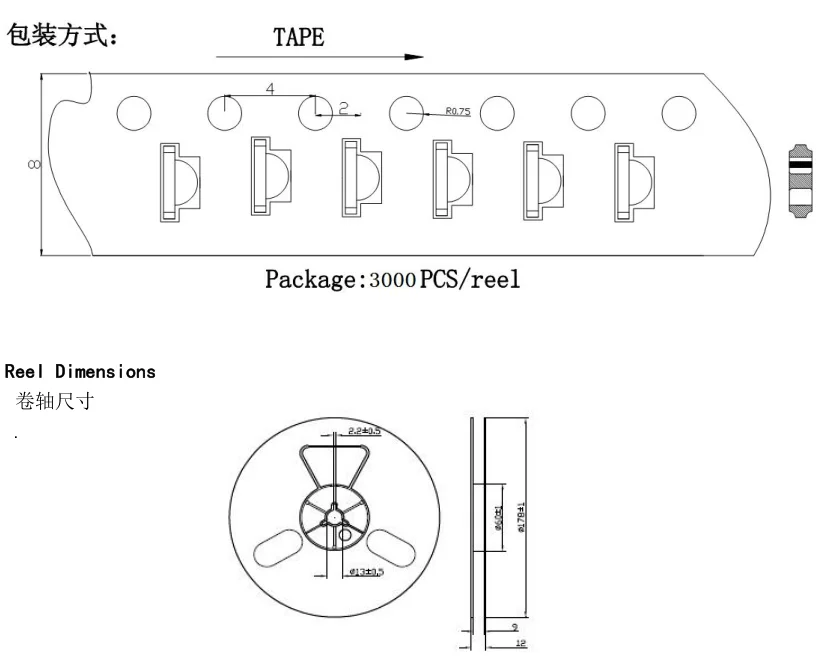 smd 1206 1204 LED blue color side view assemble