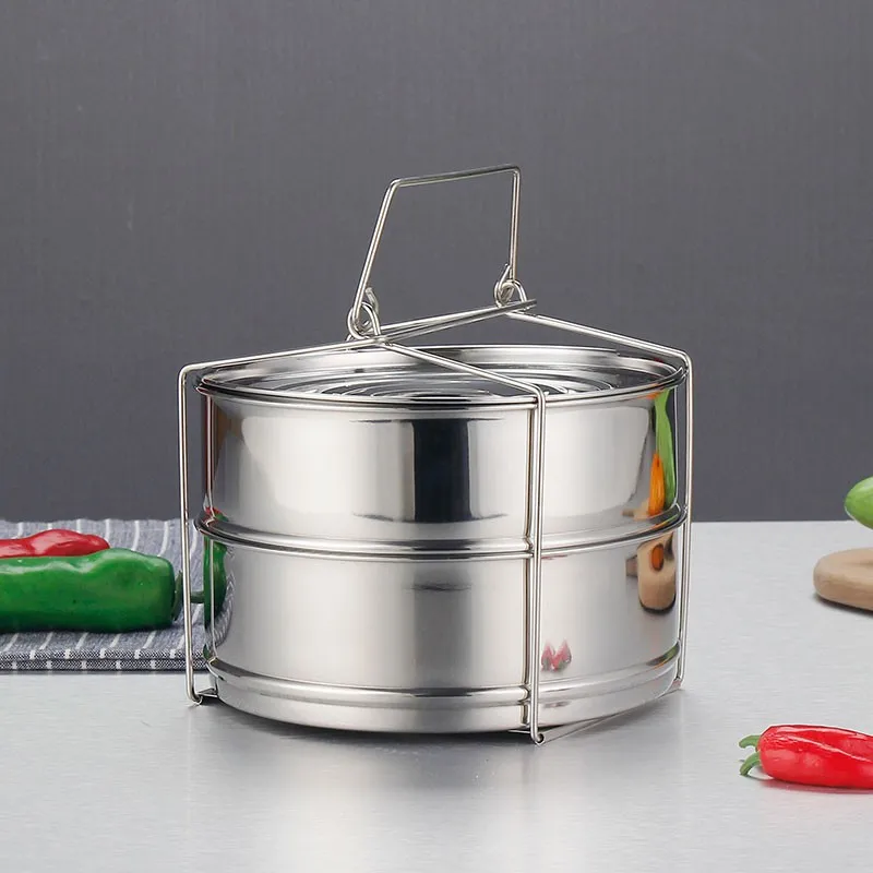 2 tilers stackable pans arrowing for variety of food to be cooked.