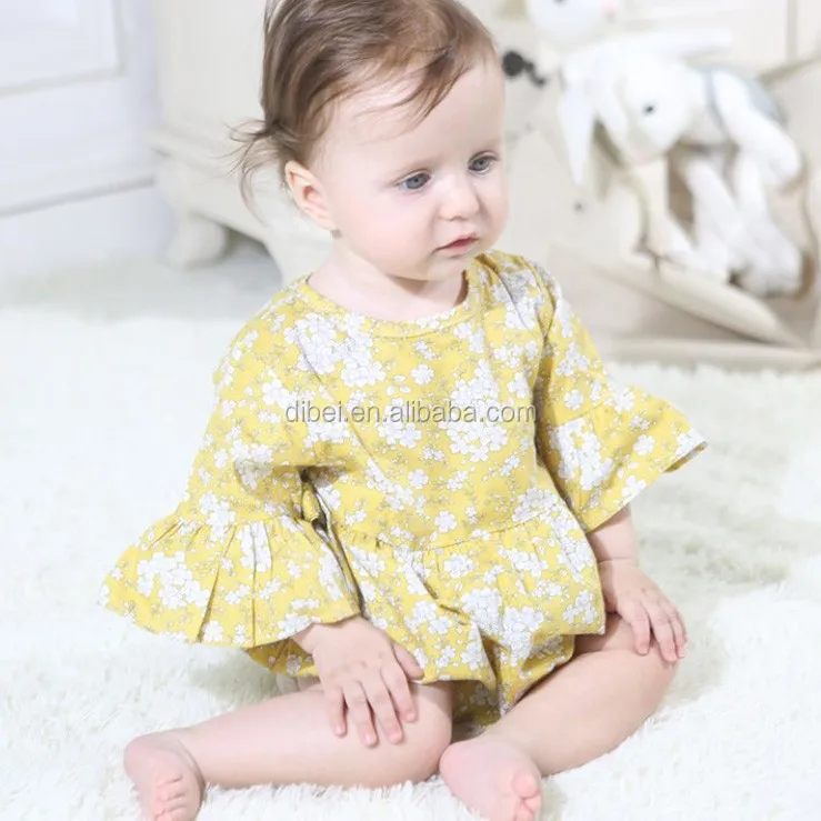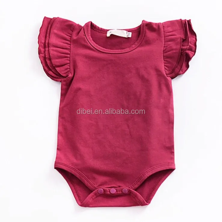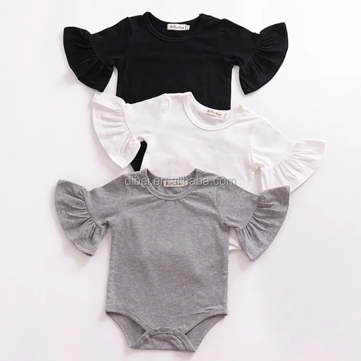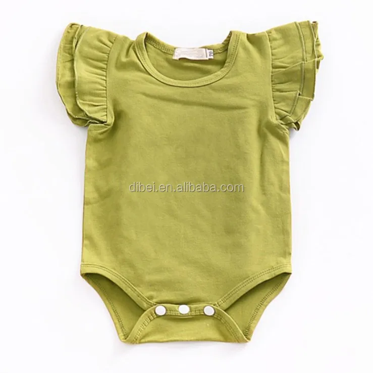 Hot Selling New born Baby Girls Flutter Ruffle Rompers Onesie Baby Clothes Summer Plain Blank Baby Romper Onesie