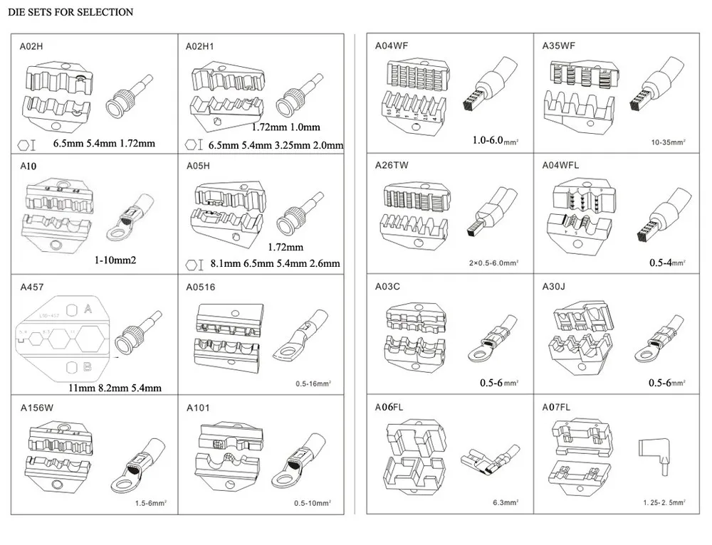 A07H | For coaxial cable connectors6.5, 8.1, 8.9mm | A416TX | For non-insulated terminals 4, 6 , 10, 16mm2 |