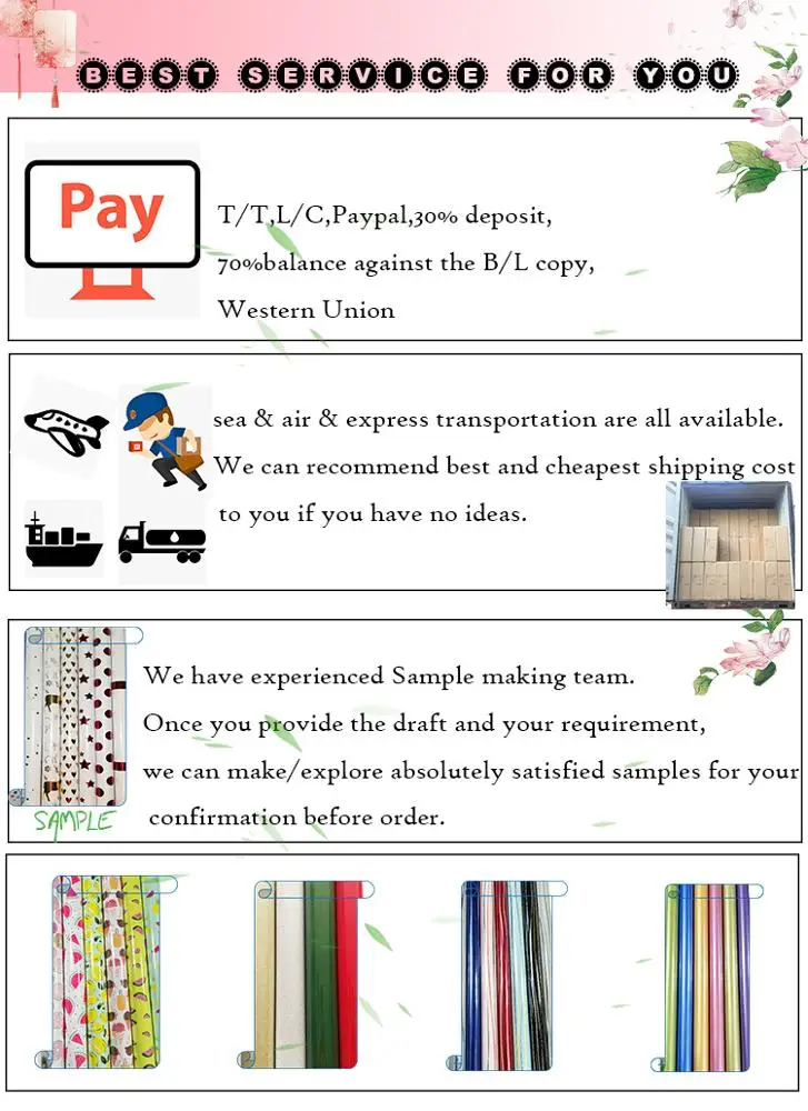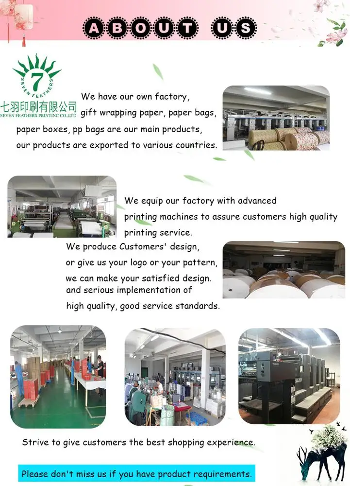Gift wrapping paper has a large number of possible uses. Here you can choose any design and color you want. It can be provided by you. Or we can give you suggestions to design high-quality and beautiful wrapping paper that meets your requirements, and put on a beautiful coat for your elaborate gifts.