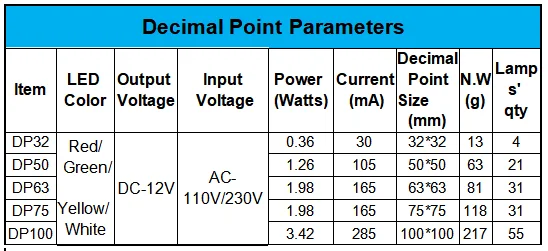 LED Chip parameters |