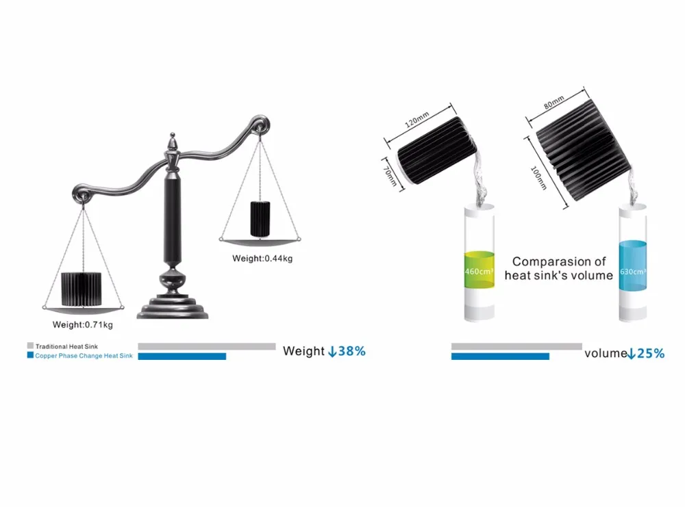 Core Technology -- Phase - Change Heat Sink Heat-Transfer Core Of Heat Sink: Heat Column High Thermal Conductivity: Far more than any material Low Temperature Starting Working: Less than 28°C Long Lifespan: More than 10 years Phase Change Principle: Vapor - liquid circulating transformation
