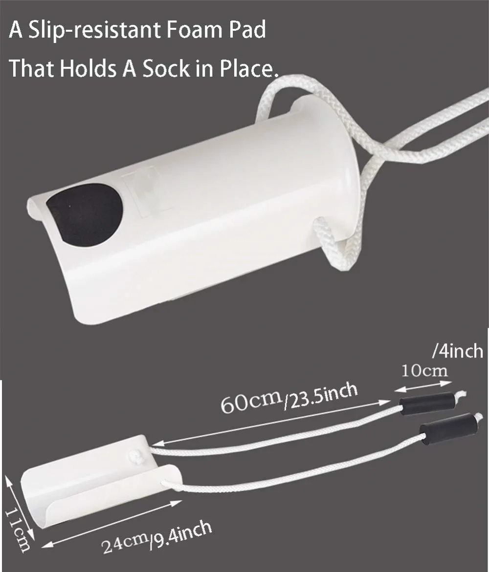 ADJUSTABLE CORD LENGTH: Sock assist cords are 33" in length. Simple length adjustments can be made with the button adjustors.