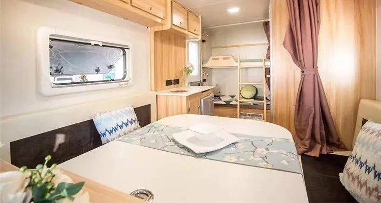 Jingchuan JTY-L420 traction recreational vehicle is equipped with living room, kitchen, bedroom, bathroom and other areas, so can satisfy a family to travel together. After driving to the destination,JTY-L420 traction recreational vehicle could be separated from tractor. The traction recreational vehicle can be stably parked through the front supporting foot, while the tractor can move normally. This model is popular with tourists.