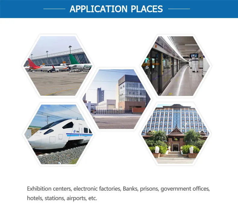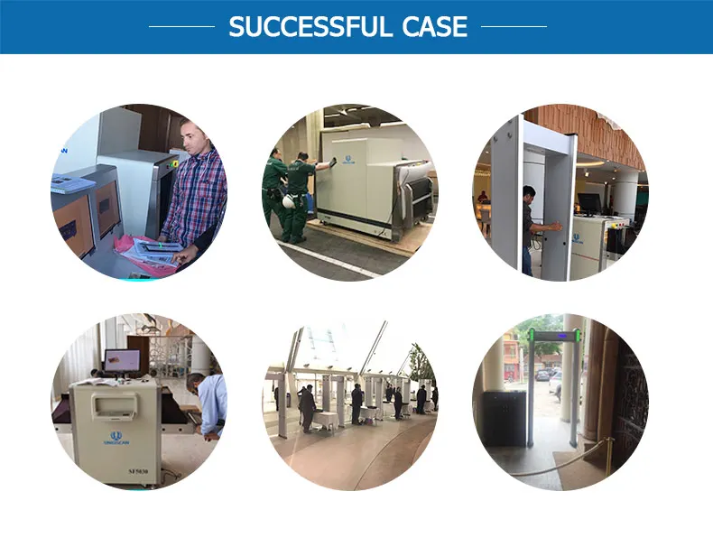 | Funtion | 1.4 corners with the LED light. 2.At the entrance and exit with the emergency button 3.Portable computer display can be locked and safe use. 4.Dual energy with DT Finland detecting board,very clear scanning images |