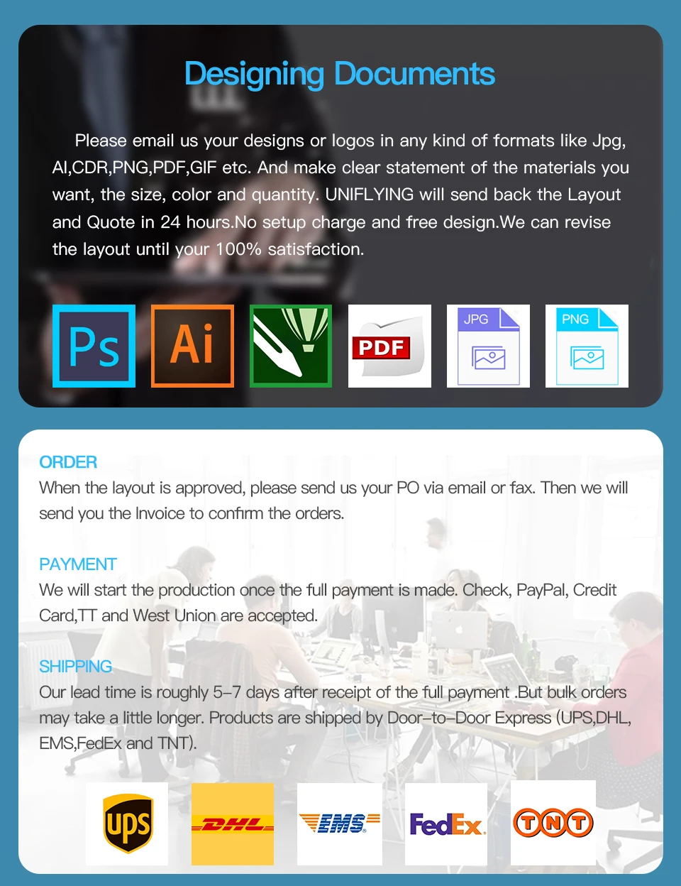 Delivery | Door to door service by DHL,FedEx,UPS,etc |
