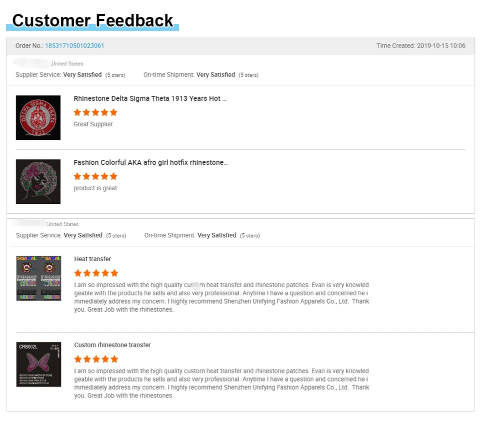 Transaction cycles | 6-15 days, depends on the quantity |