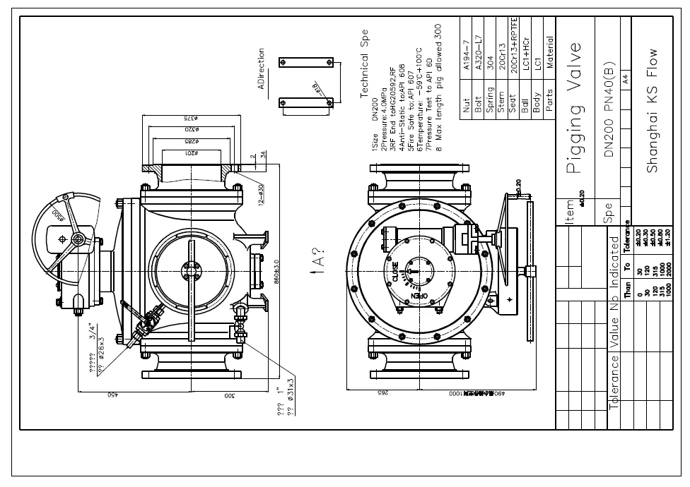 Each PIG valve can be used as a pigging ball valve or as a pigging ball valve, but the installation direction of the pigging valve must be distinguished during installation. When used as a pigging service valve, the end of the valve seat with the barrier must be installed at the upstream end of the pipe. As a pigging ball valve, the end of the valve seat with the barrier must be installed at the downstream end of the pipe. A pig trap can also be installed in front of the PIG valve and equipped with a receiver/transmitter to clear the ball valve. When the pig is the result, an indication is given.