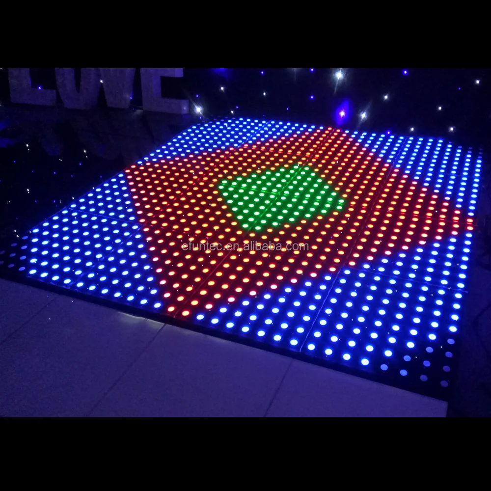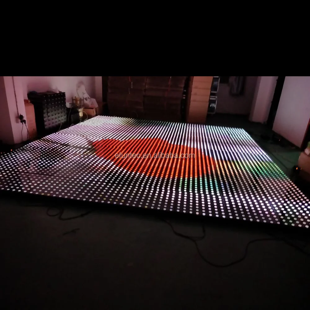 LED Dance floor is a new digital terrestrial display device, using synchronous control method to achieve high resolution video.High-strength chassis ABS materials for the base, tempered glass for the panel,can be connected seamlessly next panel.