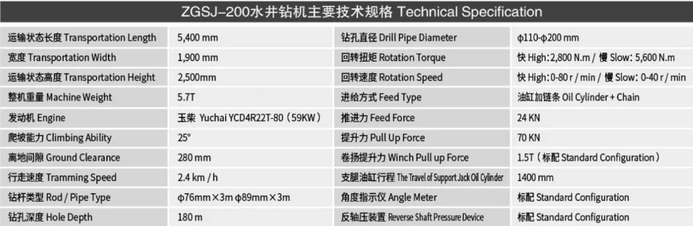 ZGSJ-200 water well drilling rig with light and flexible features for wide civilian market.