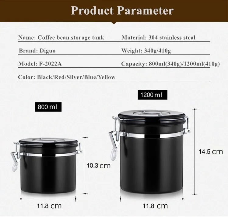 Hot Sale 800ml 1200ml Colorful Stainless Steel Airtight Canister For Sugar Food Coffee Bean Tea