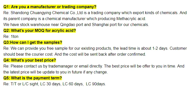 | Specification | Appearance | Total ammonia value | C8 | C10 | C12 | C14 | C16 | C18 |