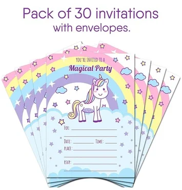 20×Unicorn Invitation Cards.