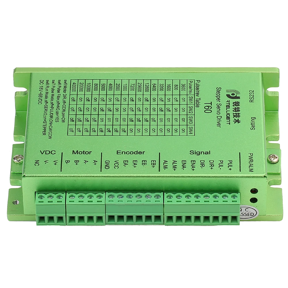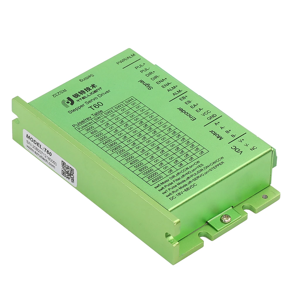 Based on the new 32-bit DSP platform, provided with vector control technology and servo demodulation function internally and in combination with feedback from the encoder of closed loop motor, T60 stepper servo drive enables the stepper servo system to feature low noise, low heating, no loss of step and higher application speed, able to improve performance of the intelligent equipment system comprehensively.