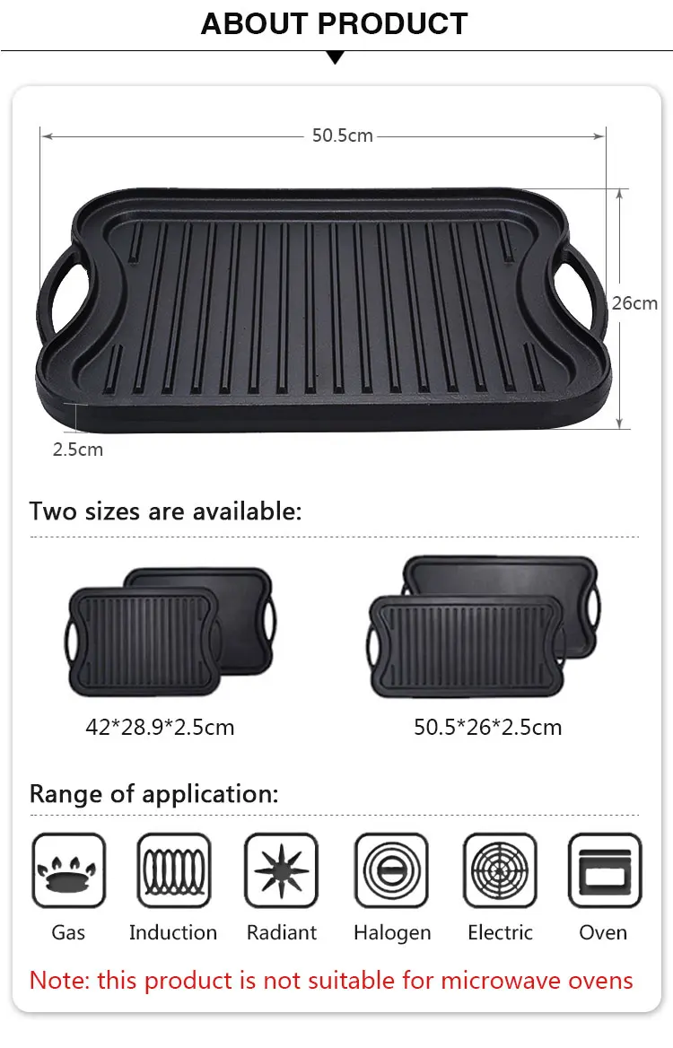 Amazon solution чугунная прямоугольная плоская сковорода для жарки барбекю гриль сковорода для Amazon