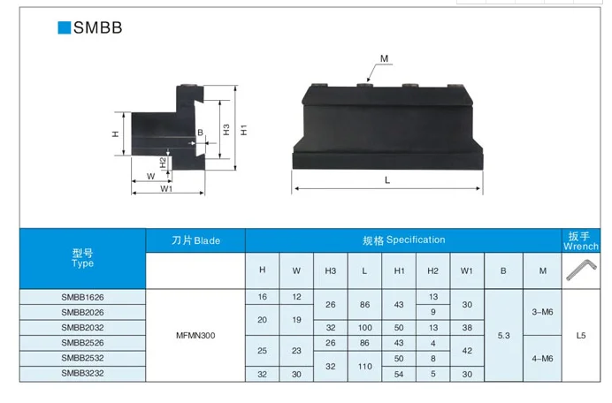 1.Type: Cut off tool holder block SMBB**