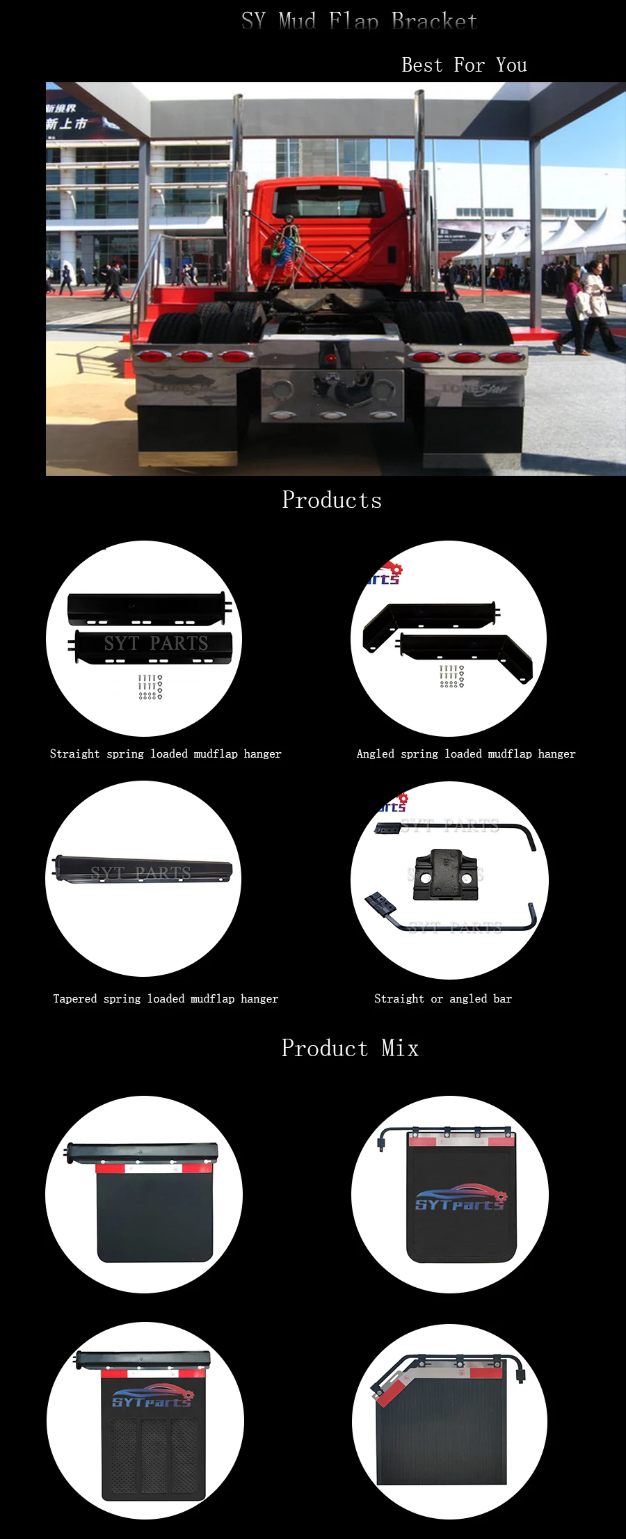 Spring loaded mud flap hangers are used to hold mud flap in place on semi trucks and other large vehicles. The wound springs on the interior allow the semi truck spring loaded mud flap hanger to spring back after impact. This helps prevent the mud flap hanger from breaking and prevents mud flaps from being torn off the hanger. Spring mud flap hangers can also be used with conspicuity tape or lighting for increased visibility and compliance with FMCSA regulations.