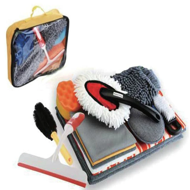 9pcs Assorted Polishing pad rub wiper cloth wash chenille mitt Storage Box car cleaning set car wash kit