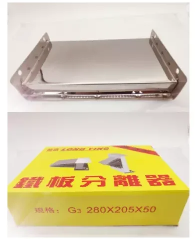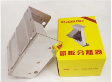 Iron plate separator can quickly separate stamping raw materials, ensure that the surface of the raw material plate is clean and traceless, inserting mechanical operation, and can completely separate the greasy or irregular iron plate without causing finger injury. According to the size, shape and weight of the thing to be separated, regardless of the number, it can be connected, used side by side, with high efficiency and convenient use. It is a common spare in the warehouse of stamping hardware factory.