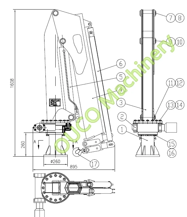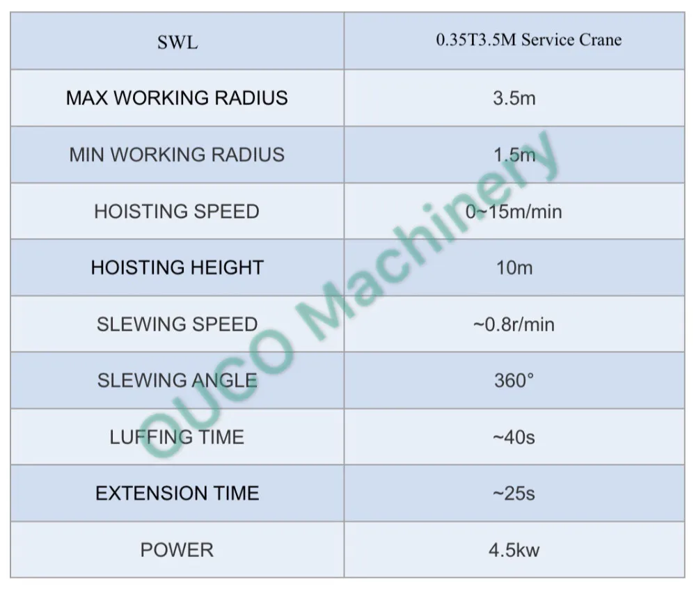 GA of 0.35T3.5M Hydraulic Pedestal Telescopic Boom Marine Deck Yacht Crane