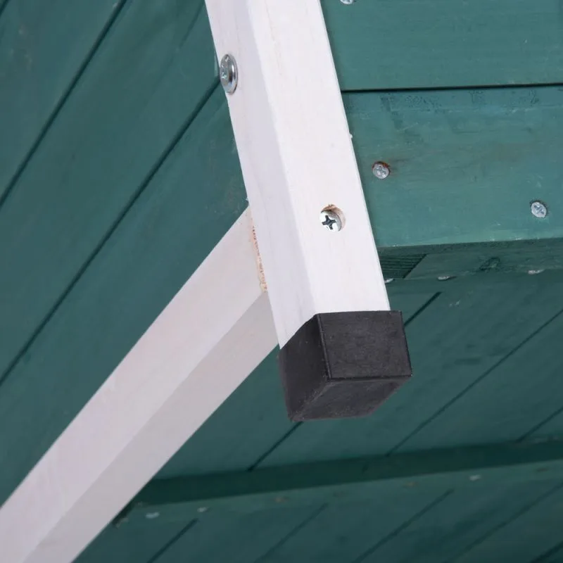 Wooden feet with plastic caps: to prevent the wood from swelling and becoming sodden