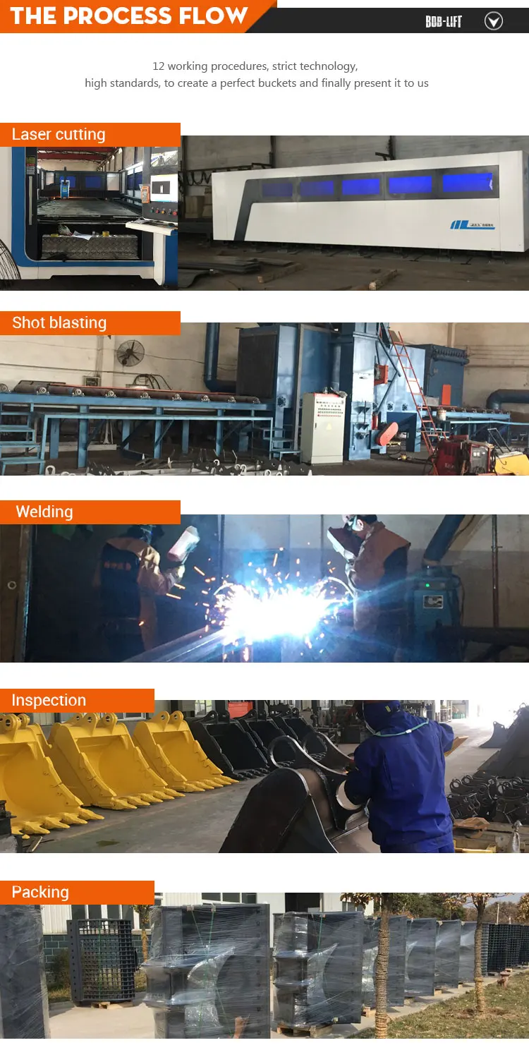 Rock bucket | Q345/NM400/NM500/AH60 | Mainly used for digging hard soil, mixed with a relative soft stone and clay, softer stones and other light load operating environment. | For over 25T excavator. |