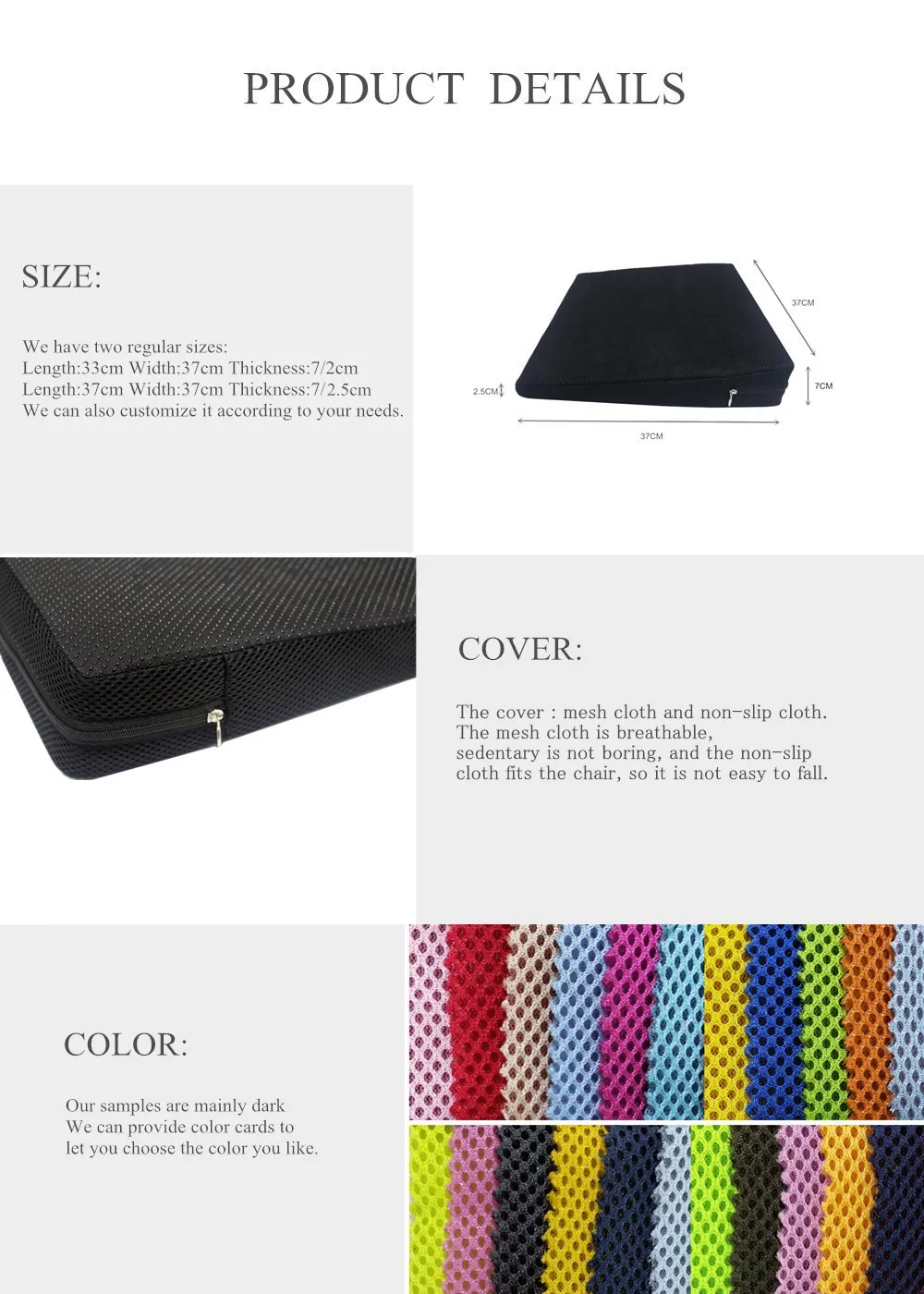 Cover Material | Mesh cloth and Non-slip cloth | ||||